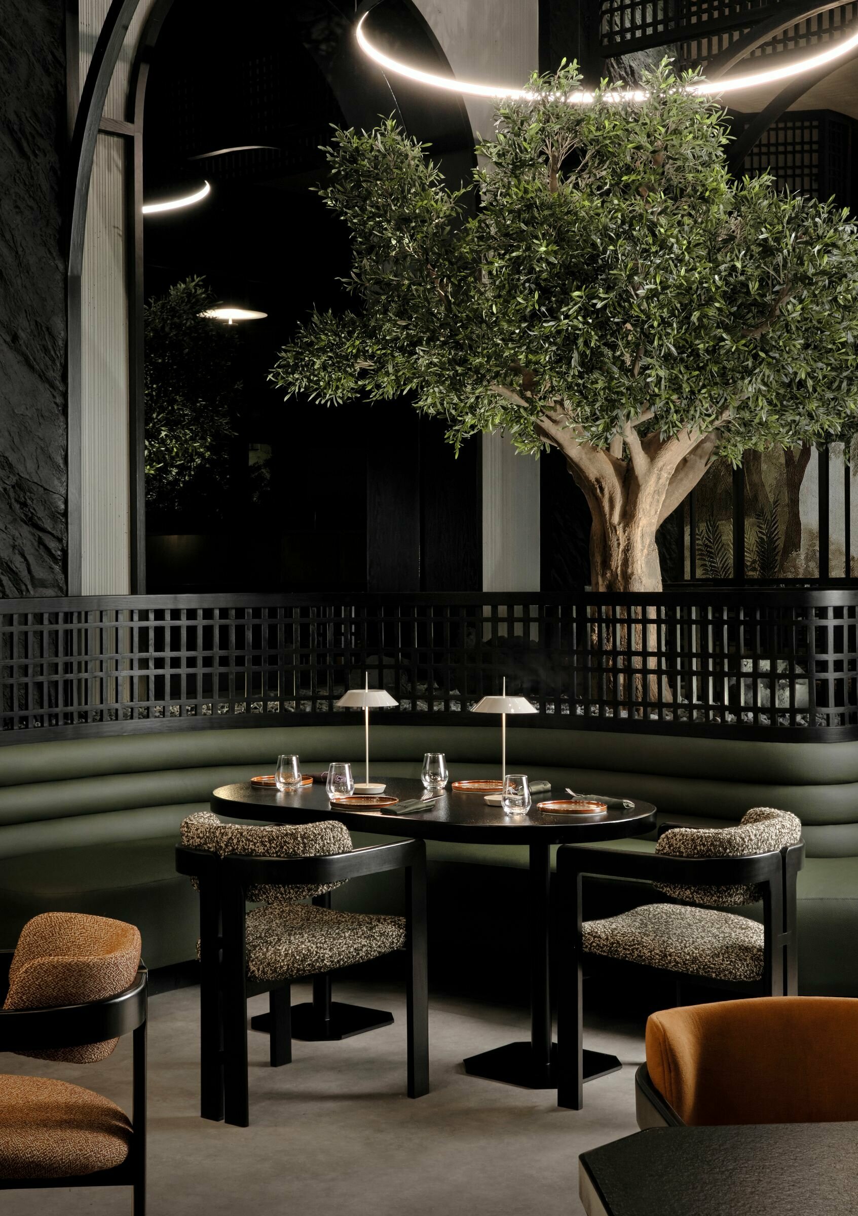 Le restaurant Nomai incarne une poésie brutaliste où la puissance des formes architecturales dialogue avec la délicatesse du monde naturel. Inspiré par Fès et par la symbolique de l’olivier, le projet associe matières brutes, pierre noire et textures minérales à une scénographie organique et immersive. Entre force et grâce, l’espace compose une atmosphère sensorielle intense, où brutalité maîtrisée et poésie végétale se rencontrent pour créer une expérience profondément contemporaine et émotionnelle.