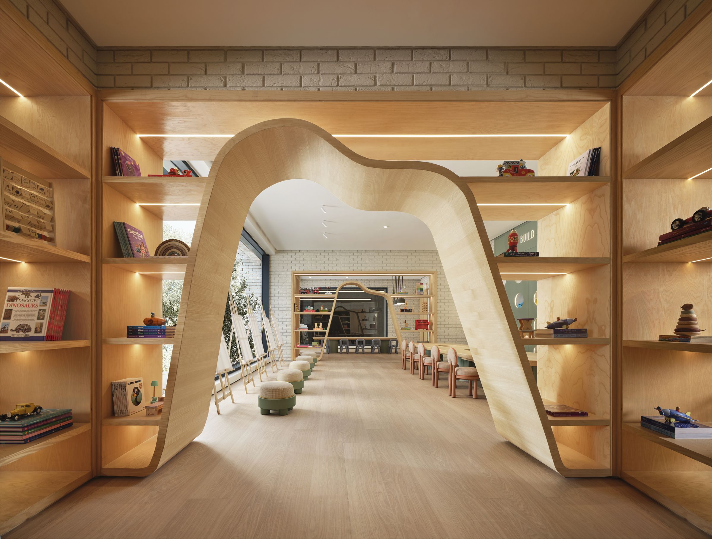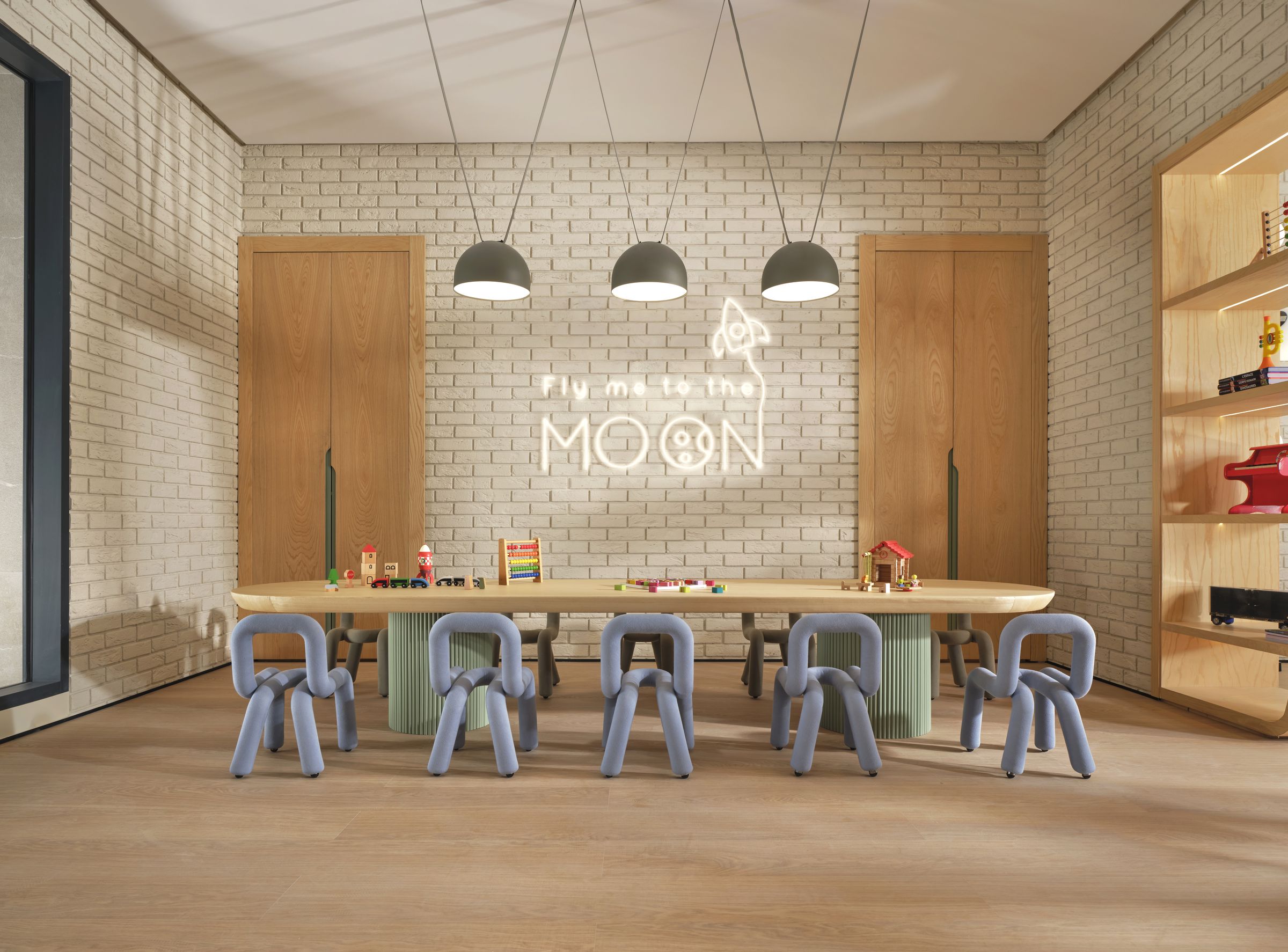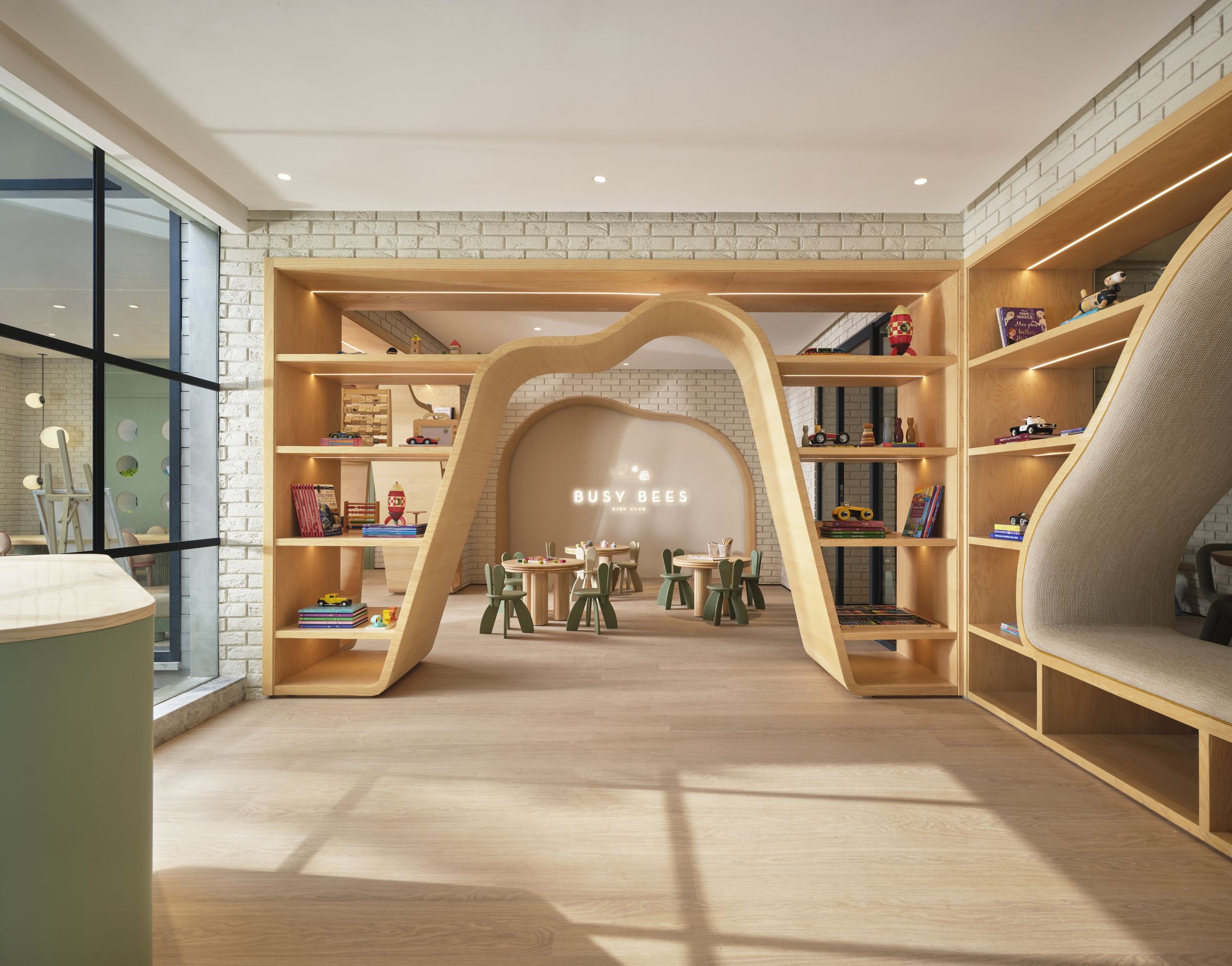 Au cœur d’Anfa Cliff, Busy Bees Kids Club est un espace imaginé pour les plus jeunes, où design et imagination se rencontrent. L’architecture privilégie des lignes douces, des volumes enveloppants et une palette chaleureuse qui crée un environnement rassurant et stimulant à la fois. Pensé à hauteur d’enfant, le lieu intègre des zones de jeu, de lecture et de création dans une composition fluide et cohérente. Les matériaux naturels et les formes organiques structurent l’espace avec subtilité, offrant un cadre lumineux et harmonieux où l’esthétique dialogue avec la fonctionnalité.